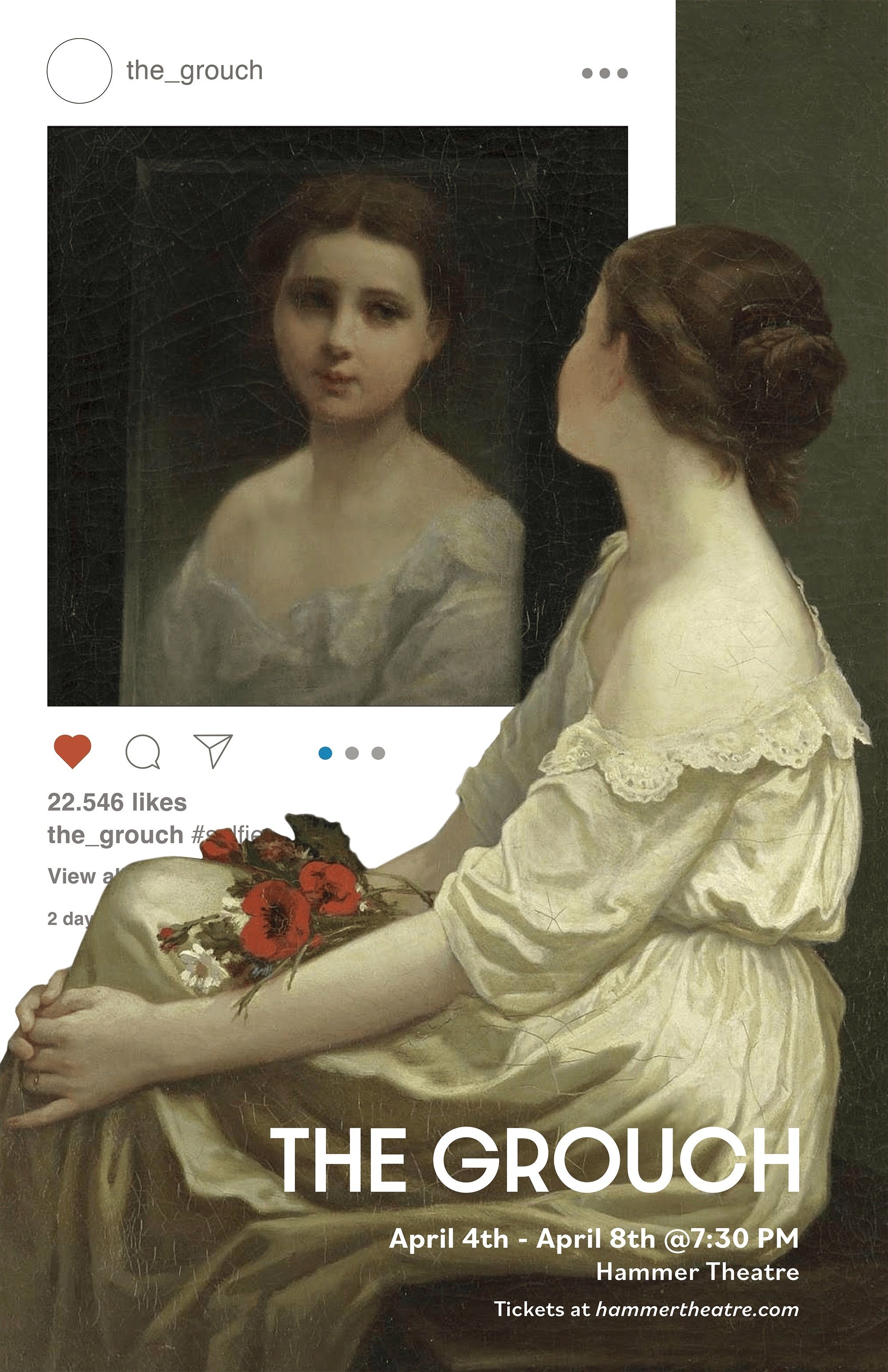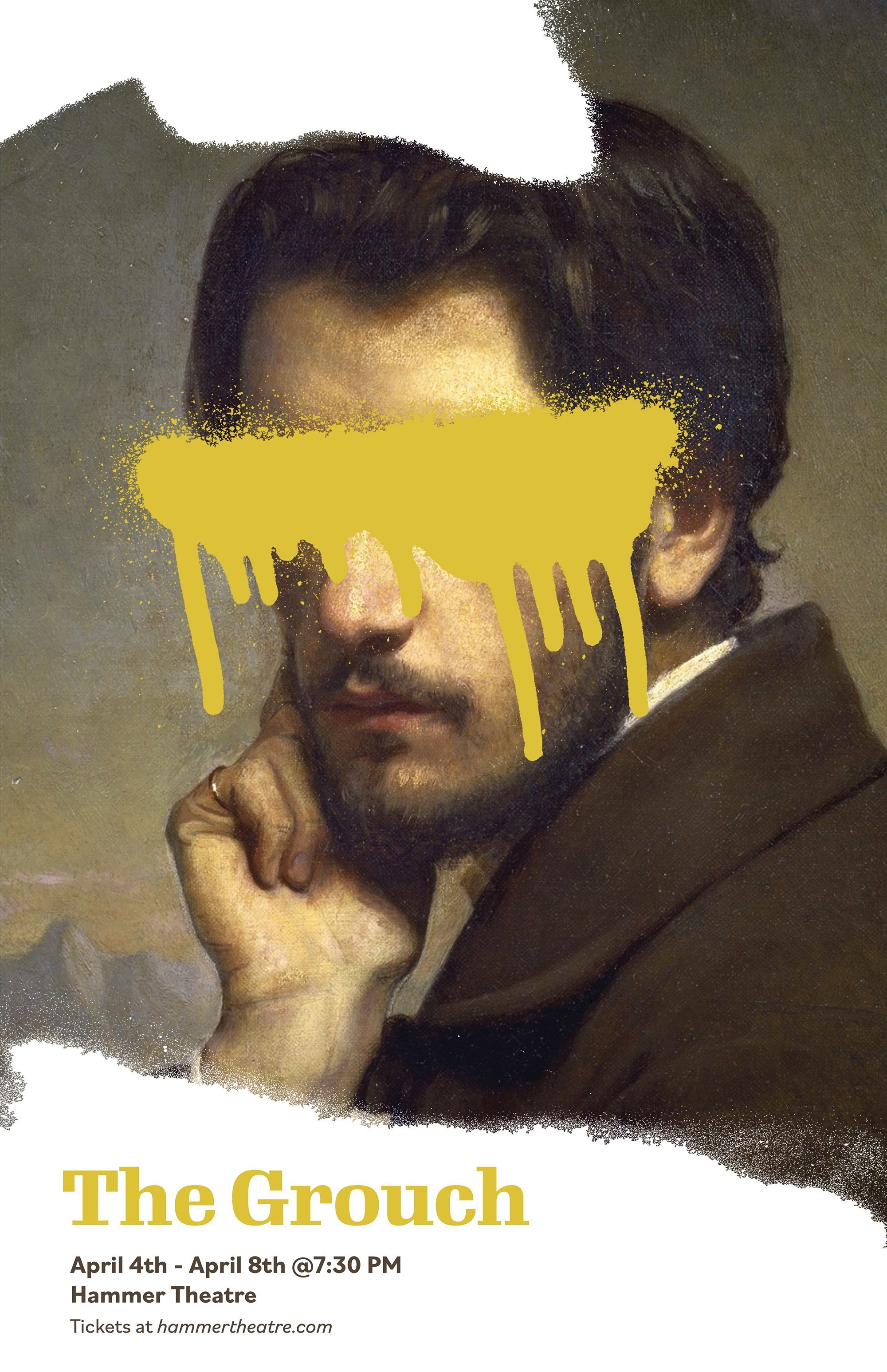 A promotional poster for the play The Grouch: A Modern Version of Le Misanthrope, performed at Hammer Theatre.