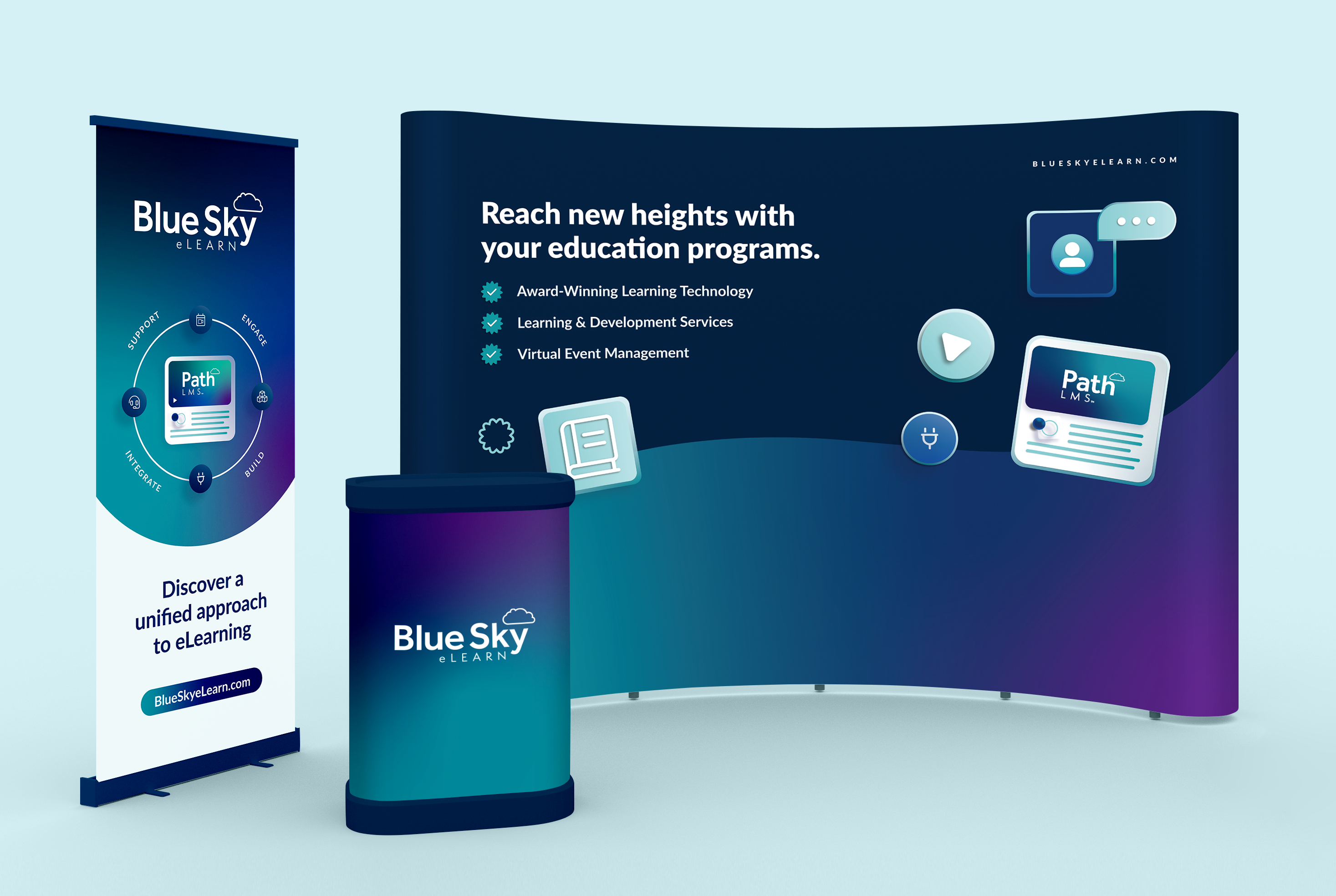 Concepts and assets design for an in-person trade show promoting the company's product and services.